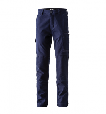 Back yoke and knee stretch panels